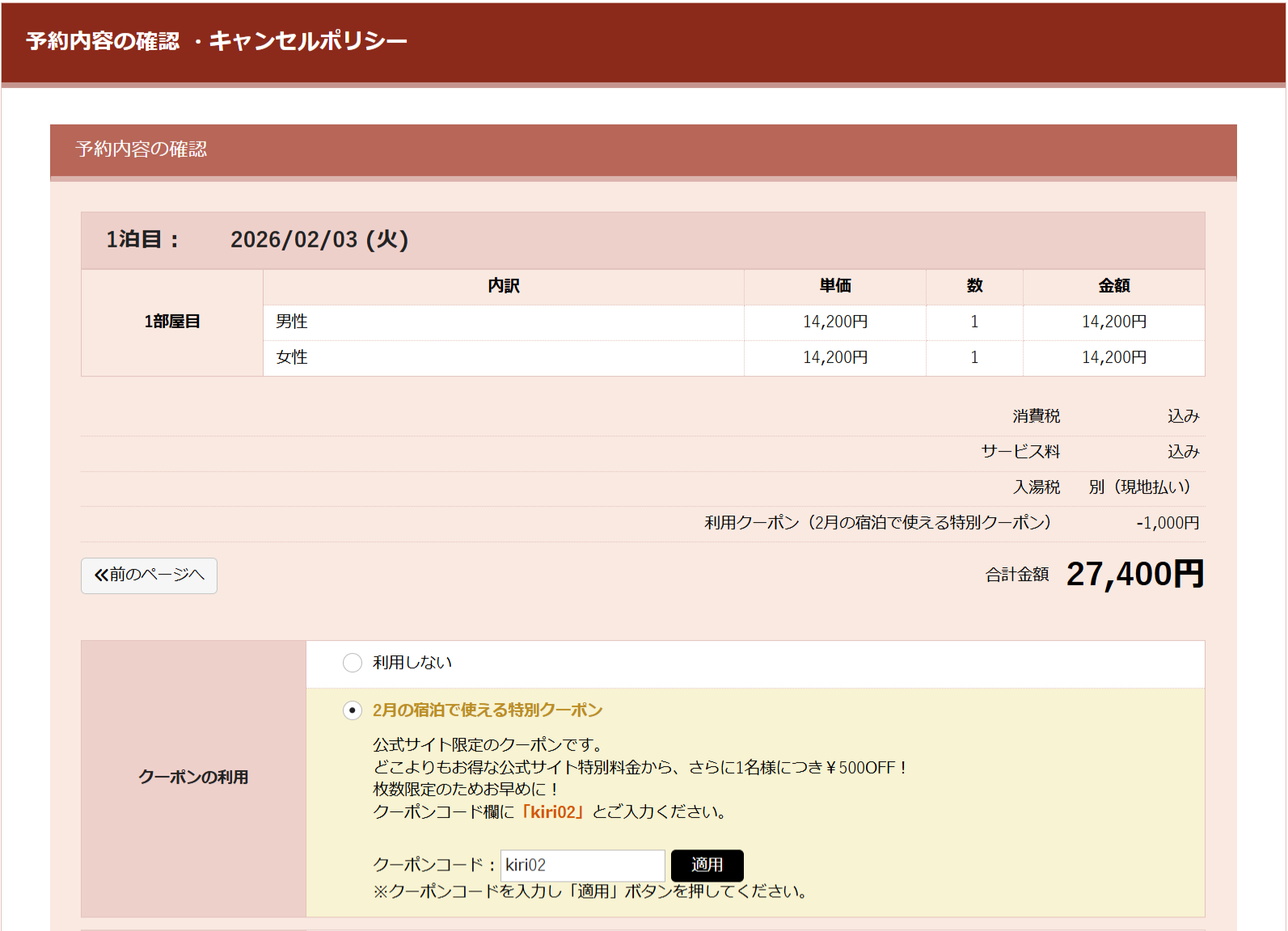 2月/3月/4月の宿泊で使える特別クーポンを配布中